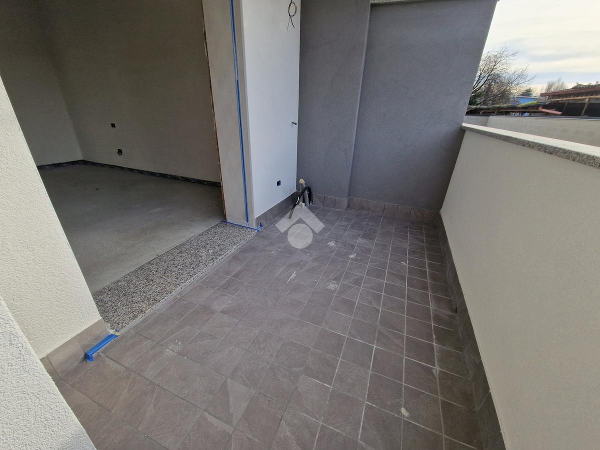 Si accede direttamente nell'ampio soggiorno con la cucina abitabile, che si affacciano entrambi su un comodo terrazzo.