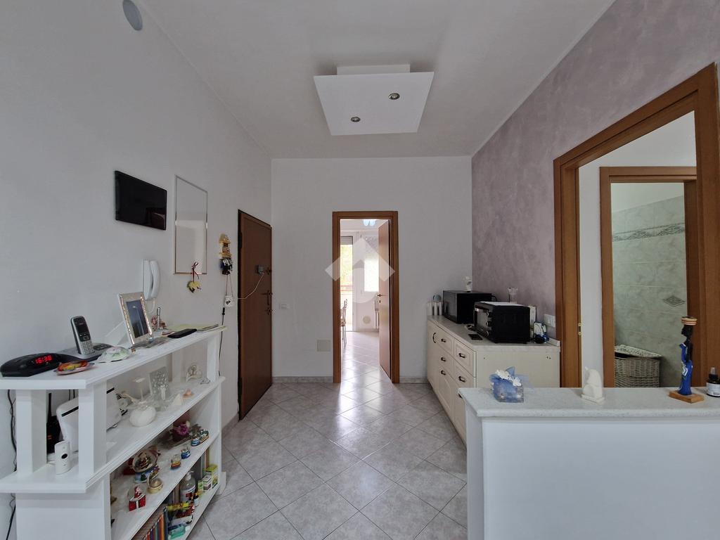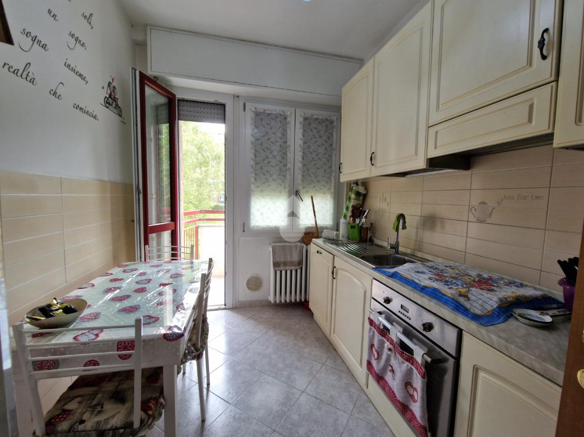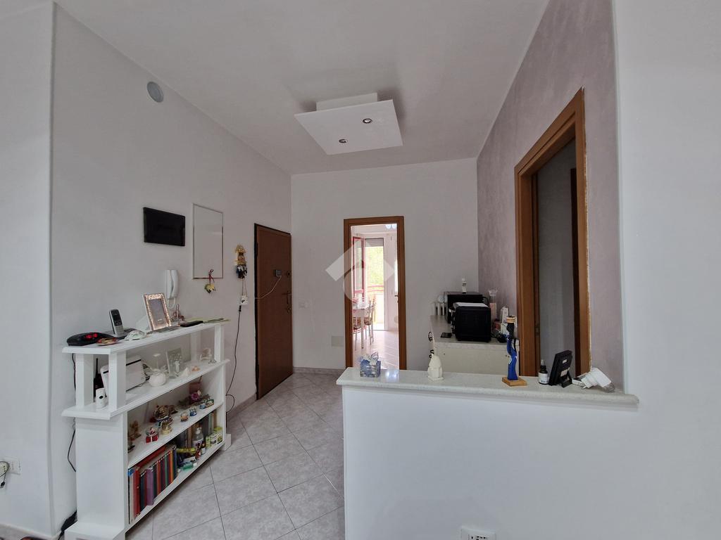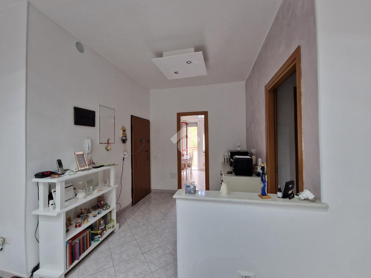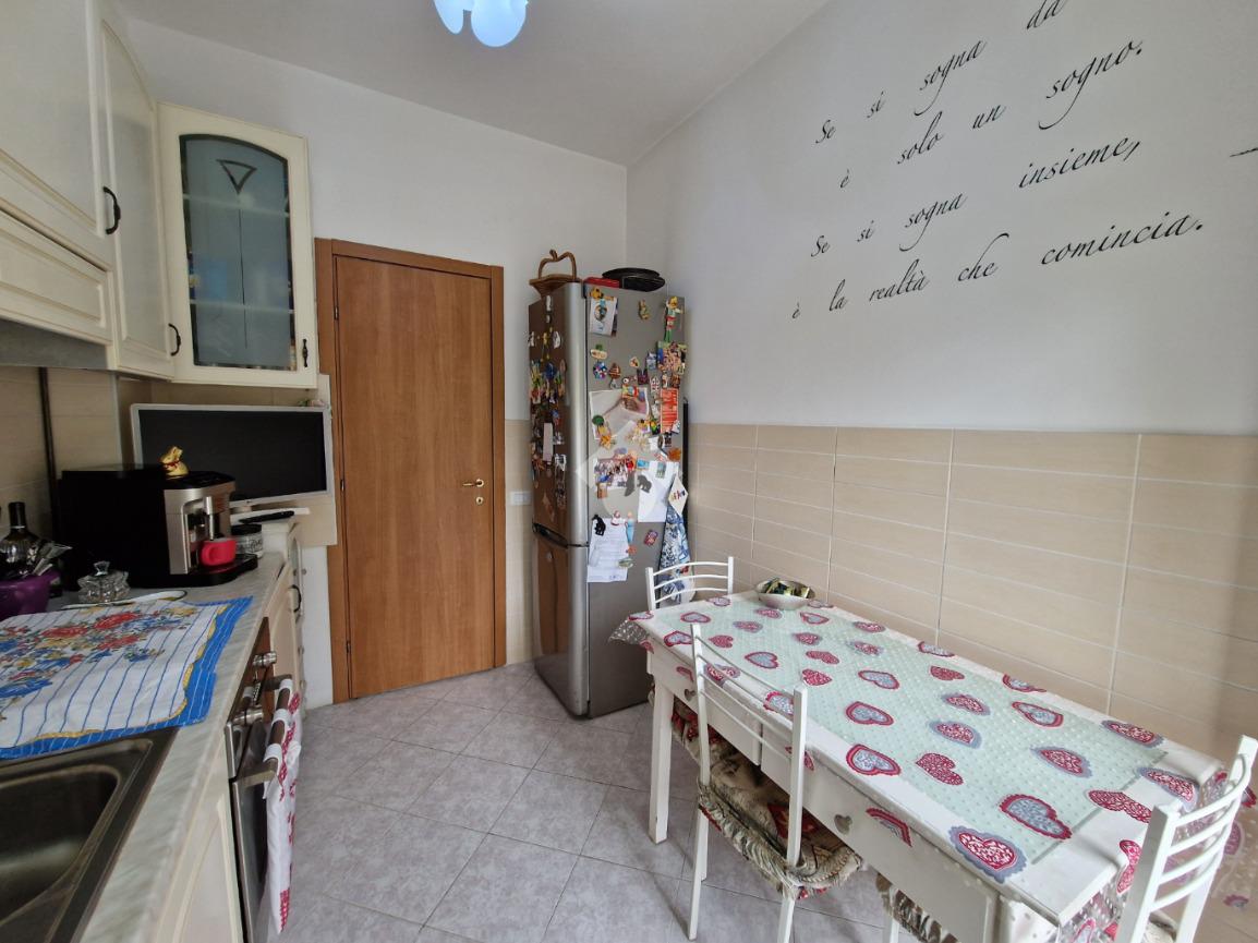 L'abitazione si apre in un grande ingresso, che divide da un lato la cucina abitabile con affaccio sul balcone e il grande soggiorno con zona sala pranzo e zona salotto, anch'esso con spazioso balcone.