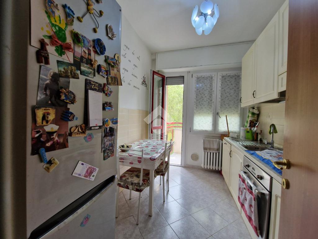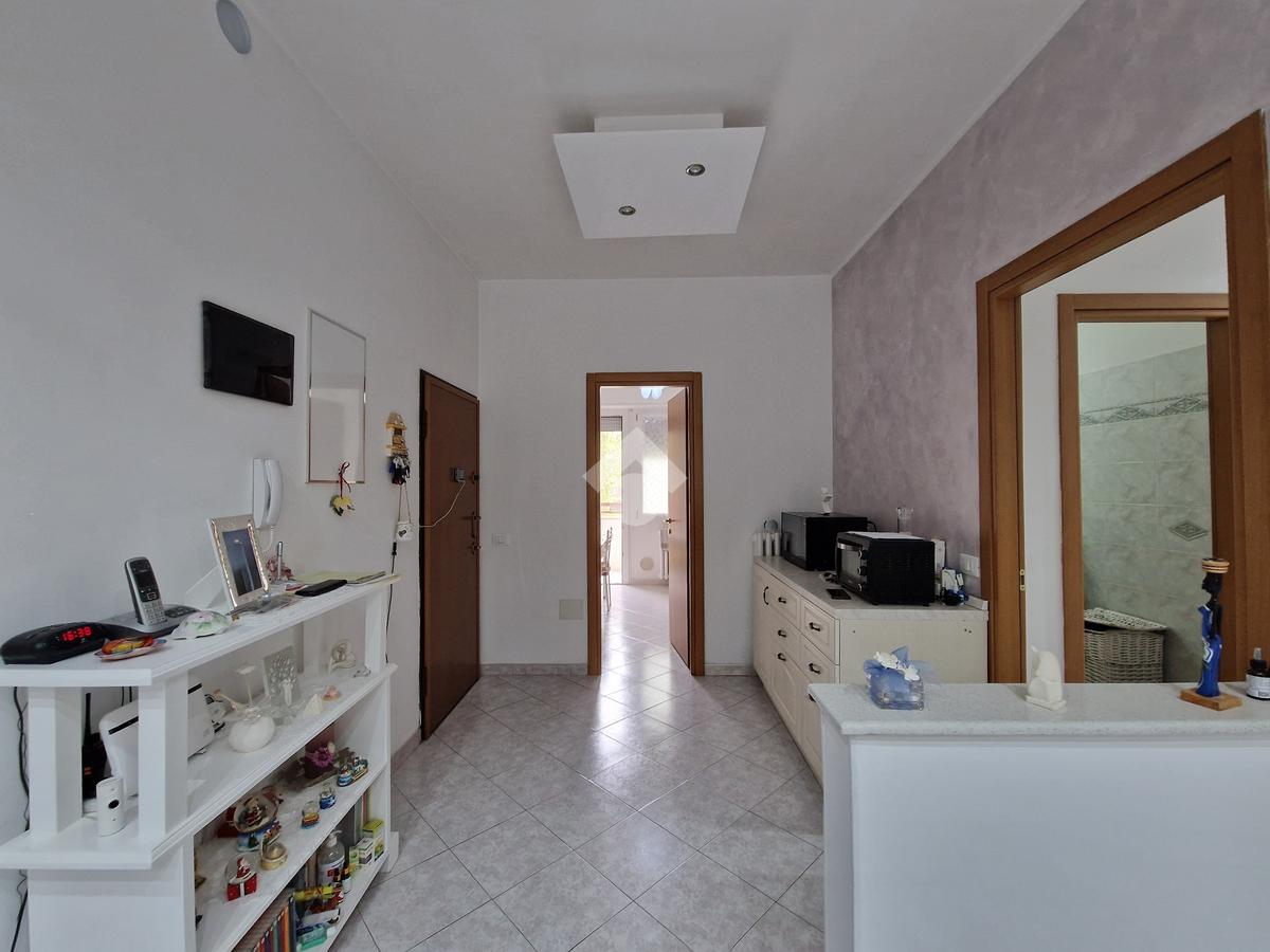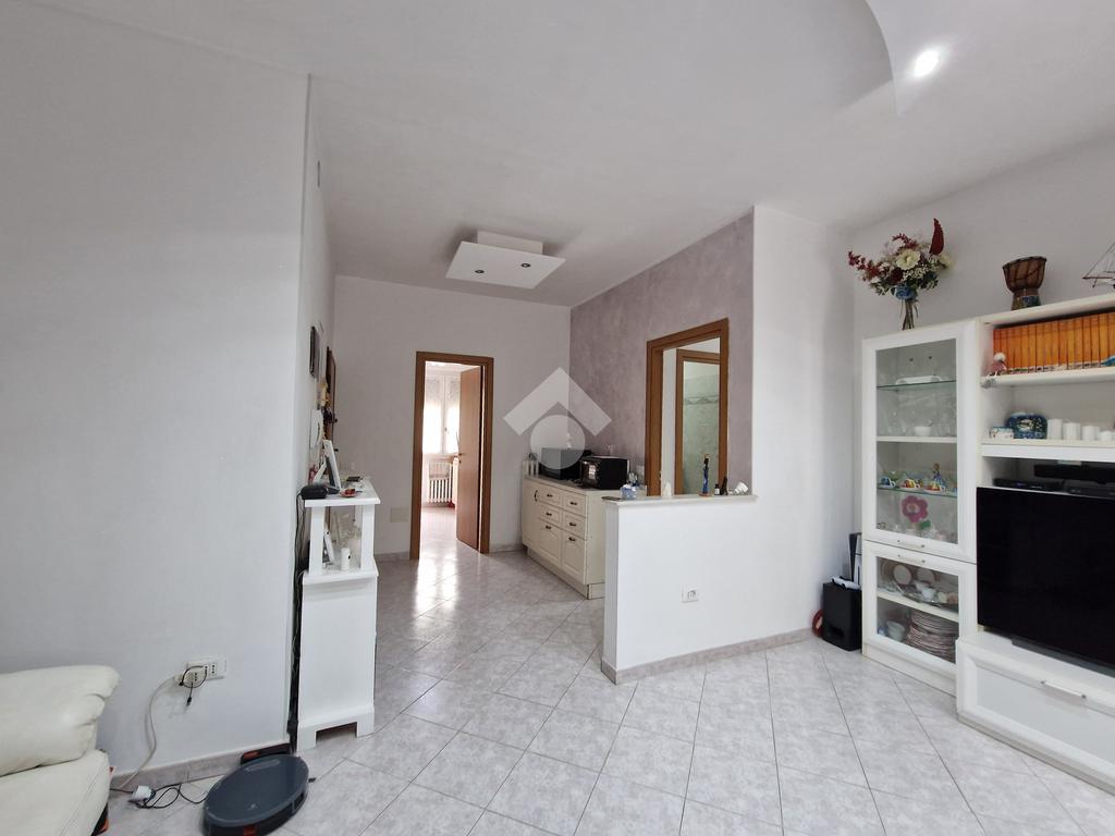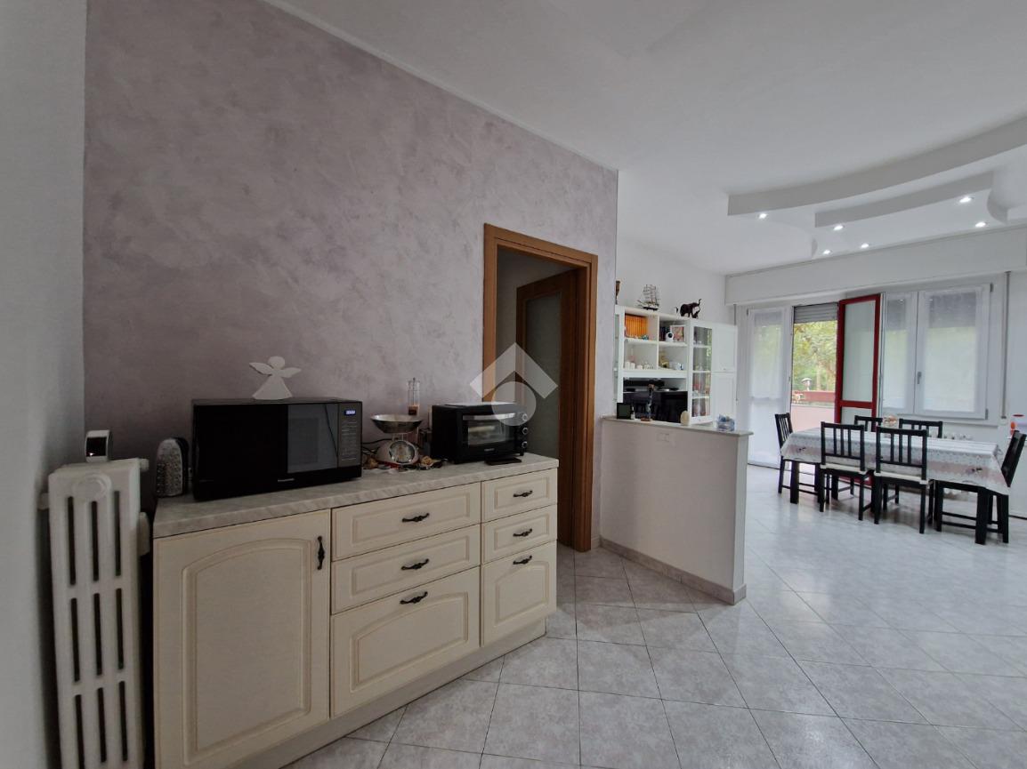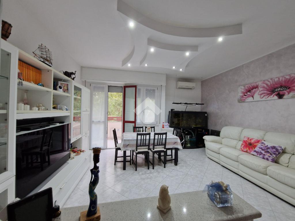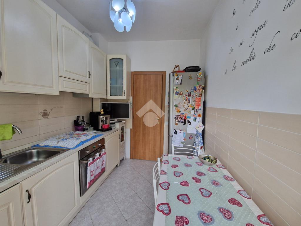 L'abitazione si apre in un grande ingresso, che divide da un lato la cucina abitabile con affaccio sul balcone e il grande soggiorno con zona sala pranzo e zona salotto, anch'esso con spazioso balcone.