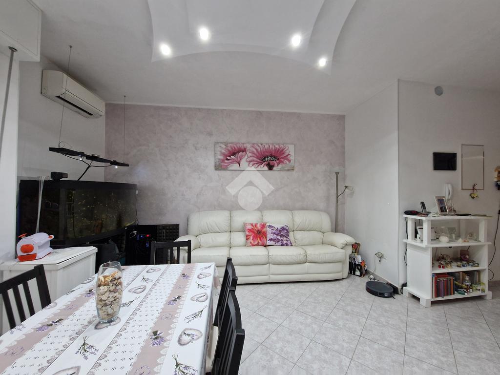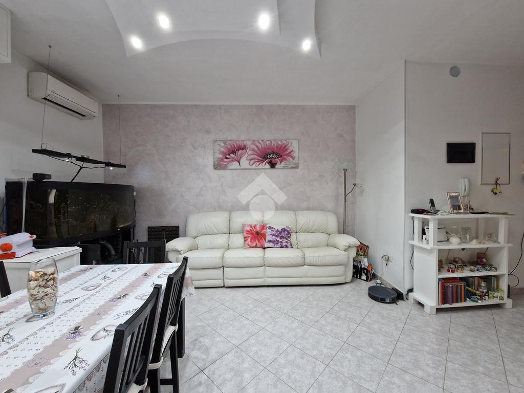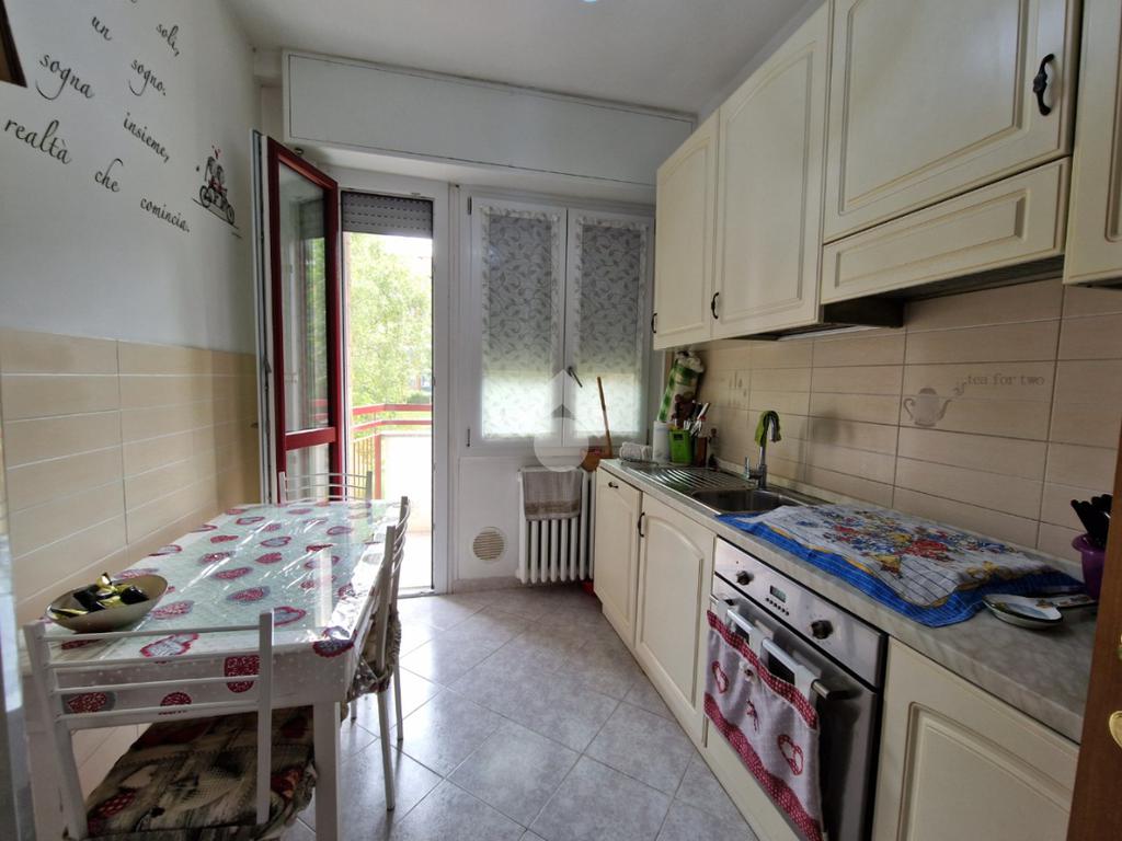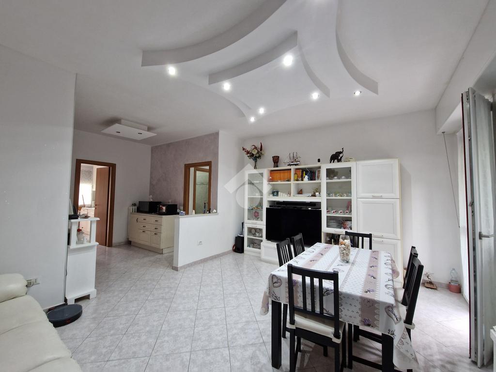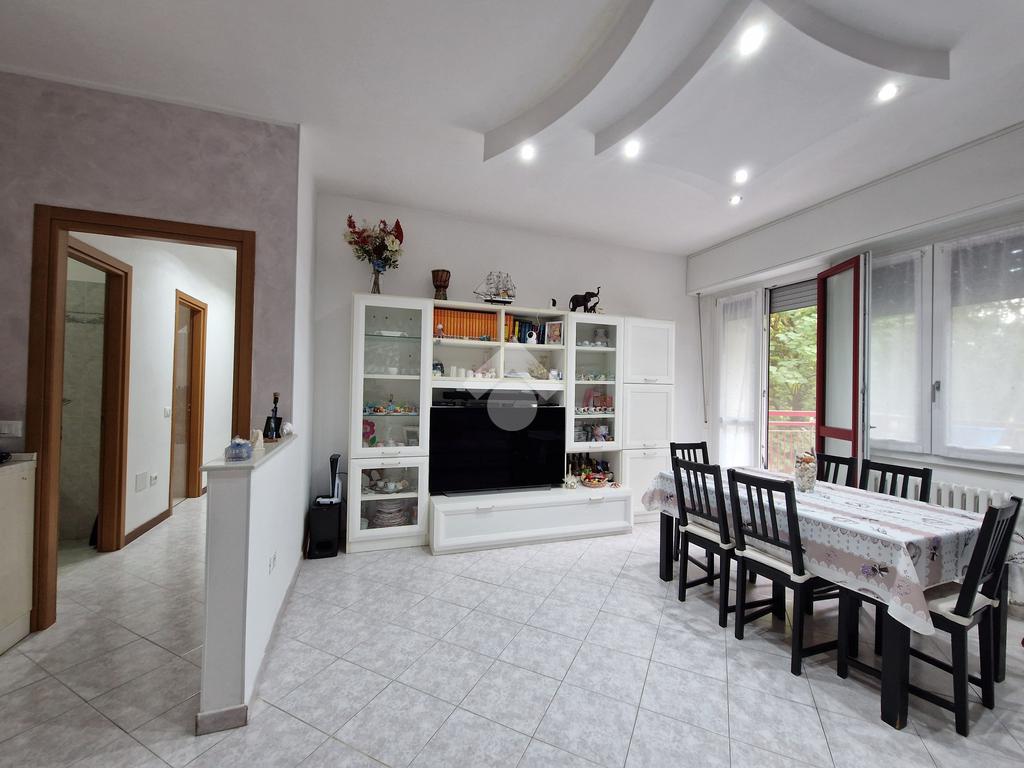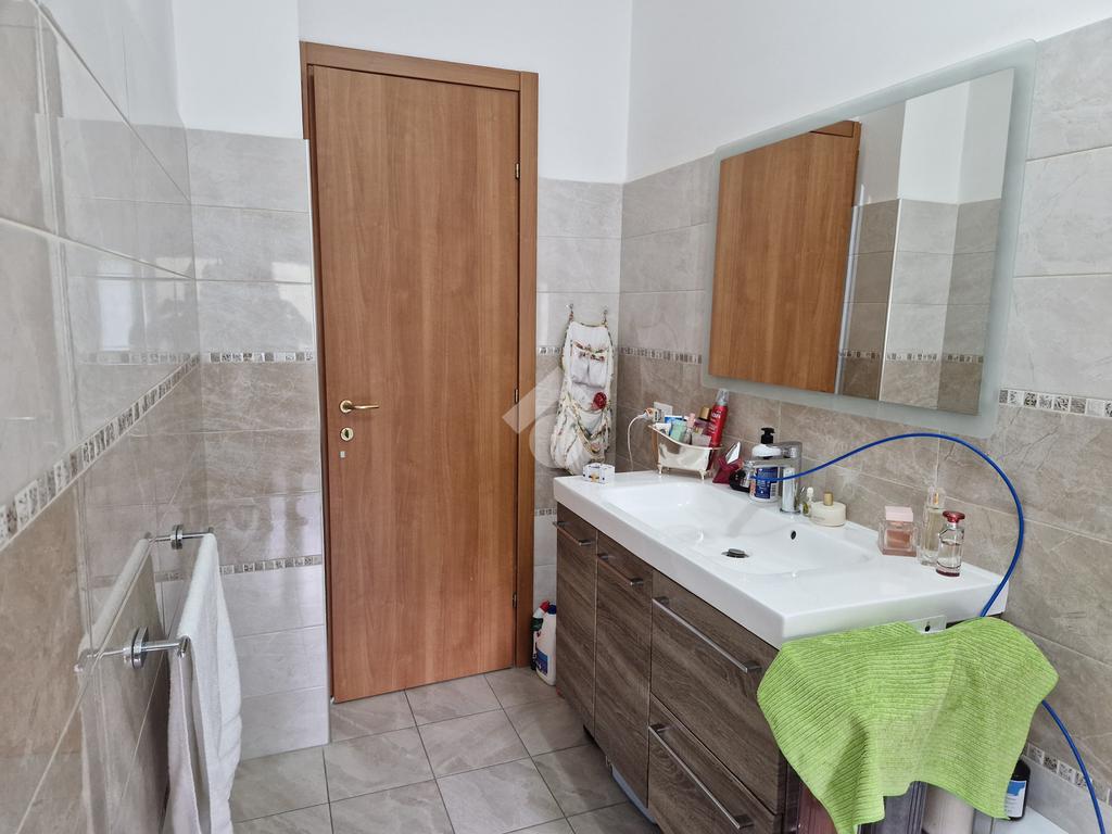L'abitazione si apre in un grande ingresso, che divide da un lato la cucina abitabile con affaccio sul balcone e il grande soggiorno con zona sala pranzo e zona salotto, anch'esso con spazioso balcone.