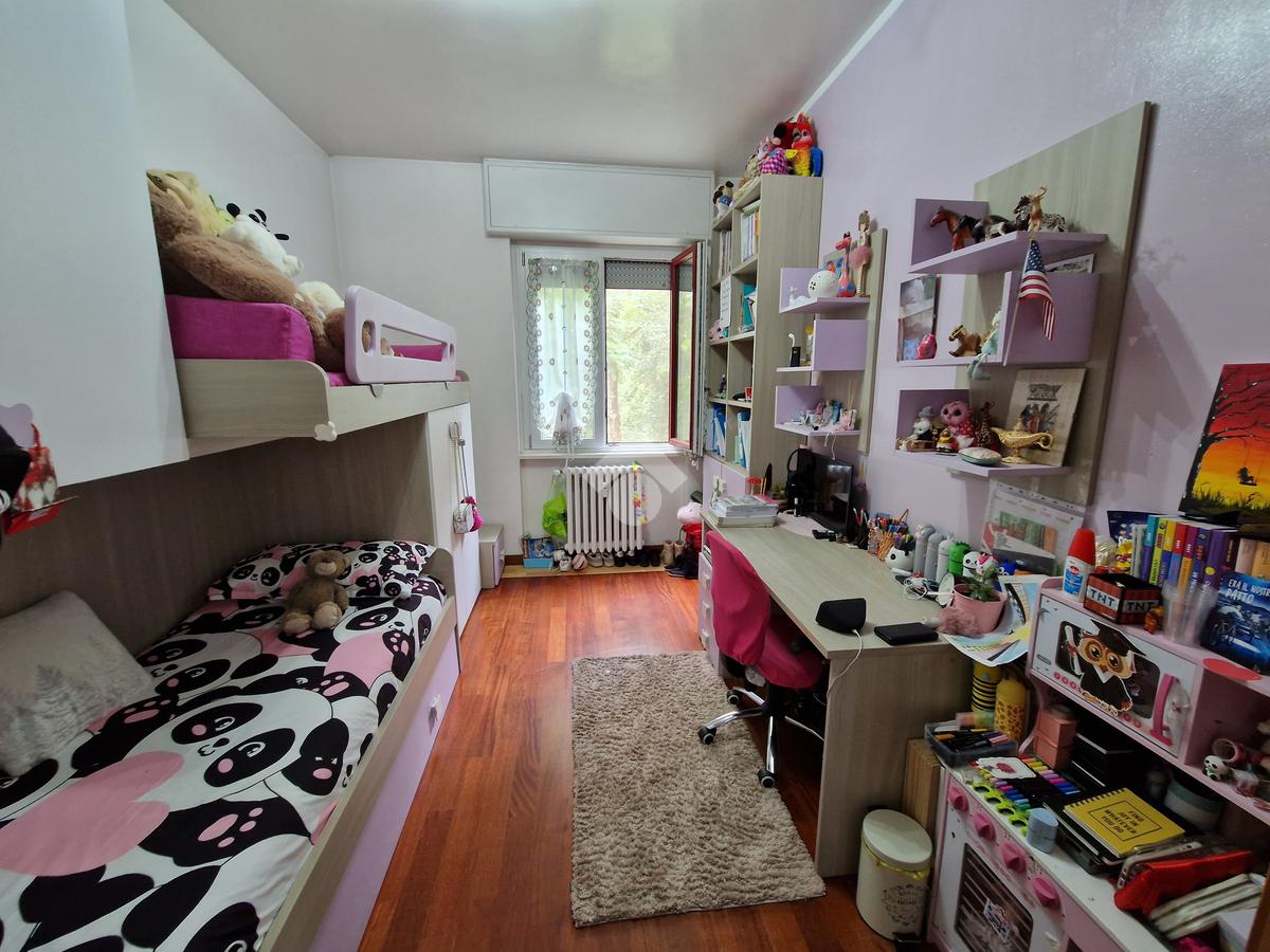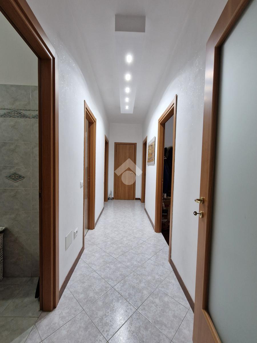 Il corridoio separa a zona notte completa di tre camere da letto e due bagno entrambe finestrati , oltre ad un capiente ripostiglio .