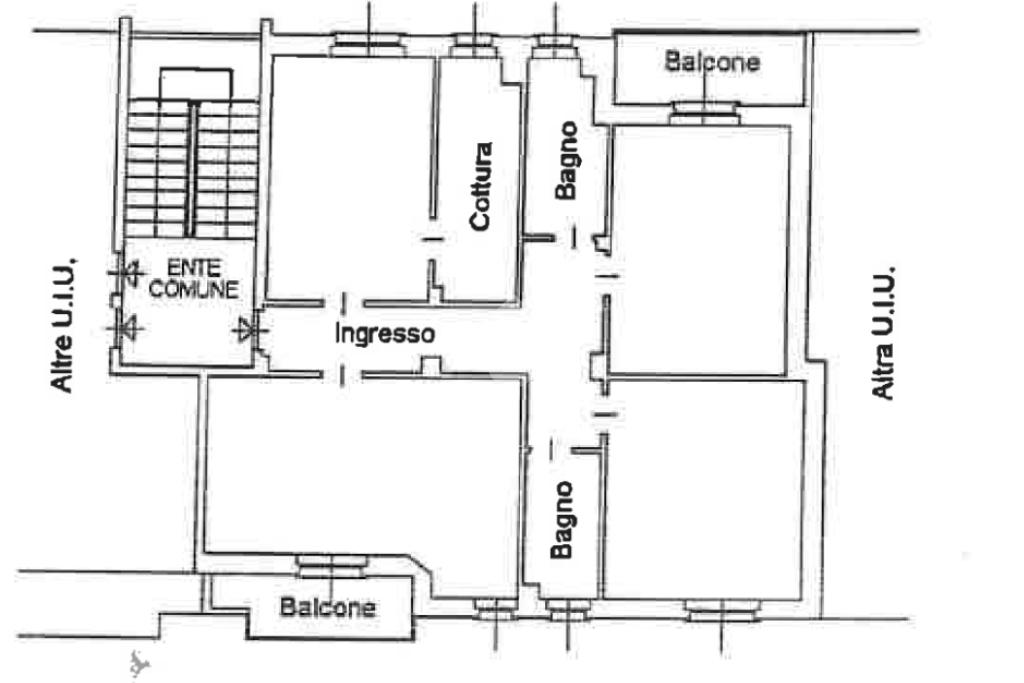 L'abitazione si apre nello spazioso ingresso, dove troviamo il soggiorno affacciato sul balcone ed il cucinotto. La soluzione è dotata di tre grandi camere matrimoniali ed i doppi servizi entrambe finestrati. Con due comodi balconi esposti rispettivamente uno a sud e uno a nord.