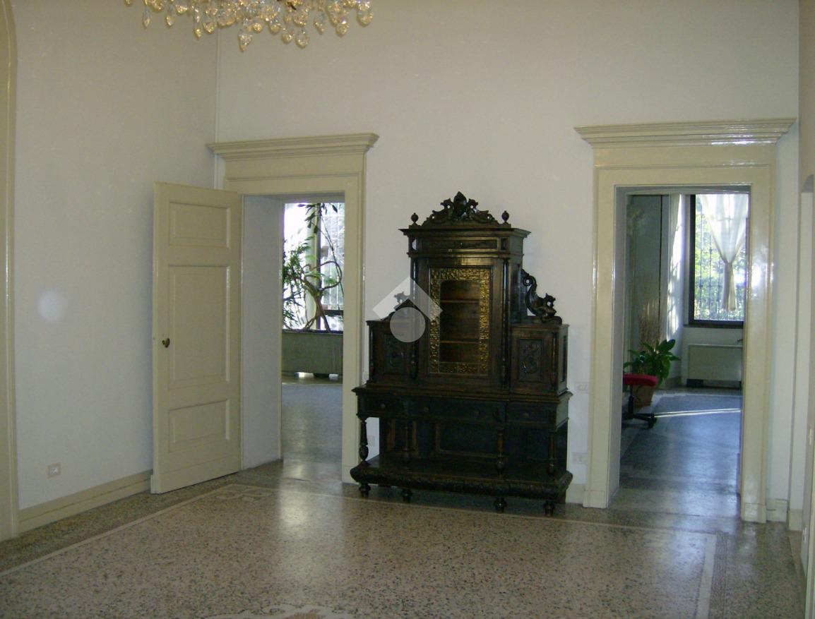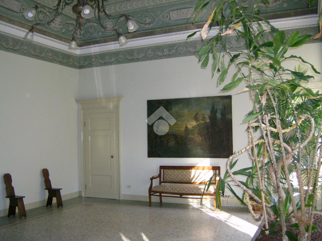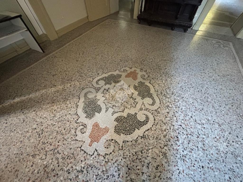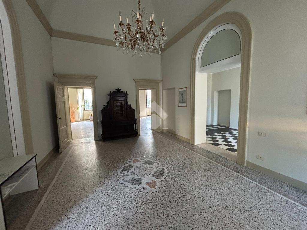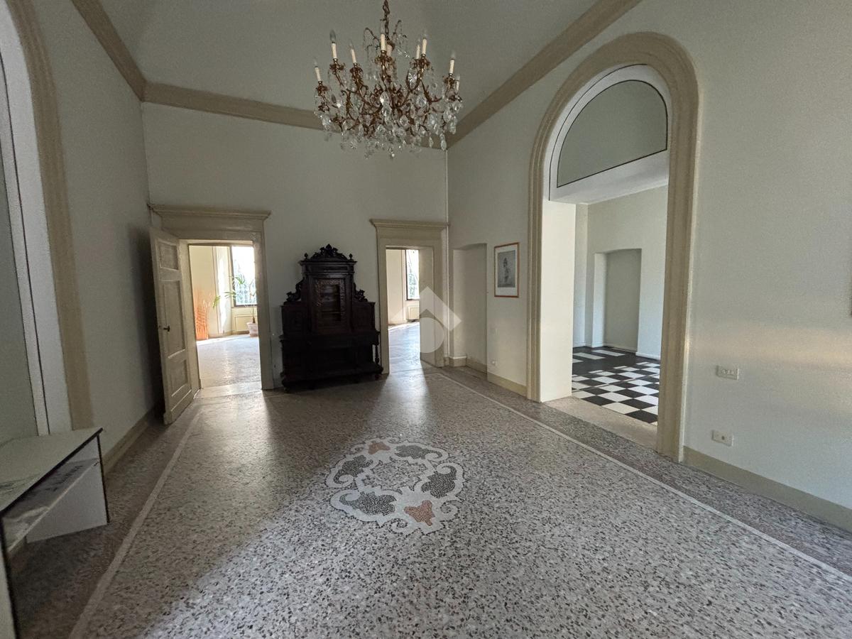La porzione in vendita è posta al piano rialzato della villa, la bellezza degli ambienti risalta non appena si mette piede all'interno dei saloni con soffitti a volta decorati con altezze di cinque metri , oltre ai pavimenti in seminato veneziano con eleganti disegni a mosaico.