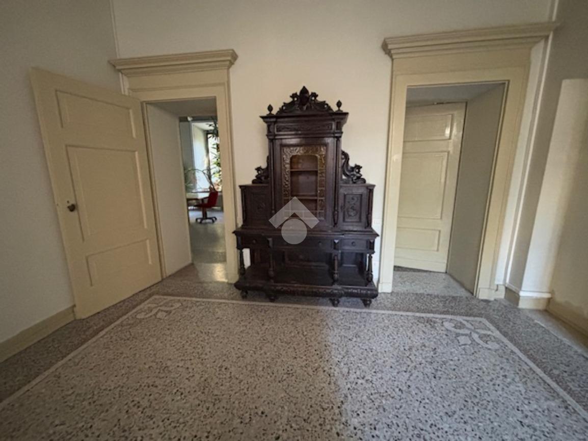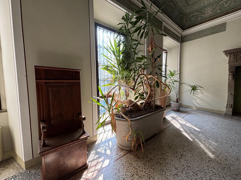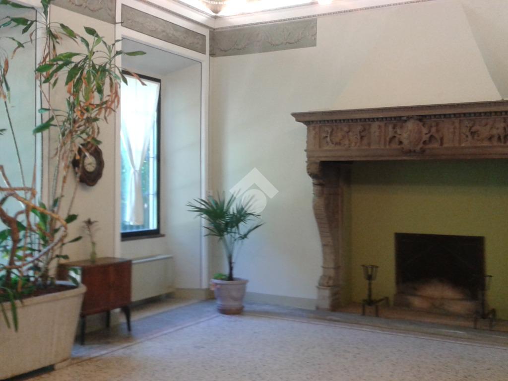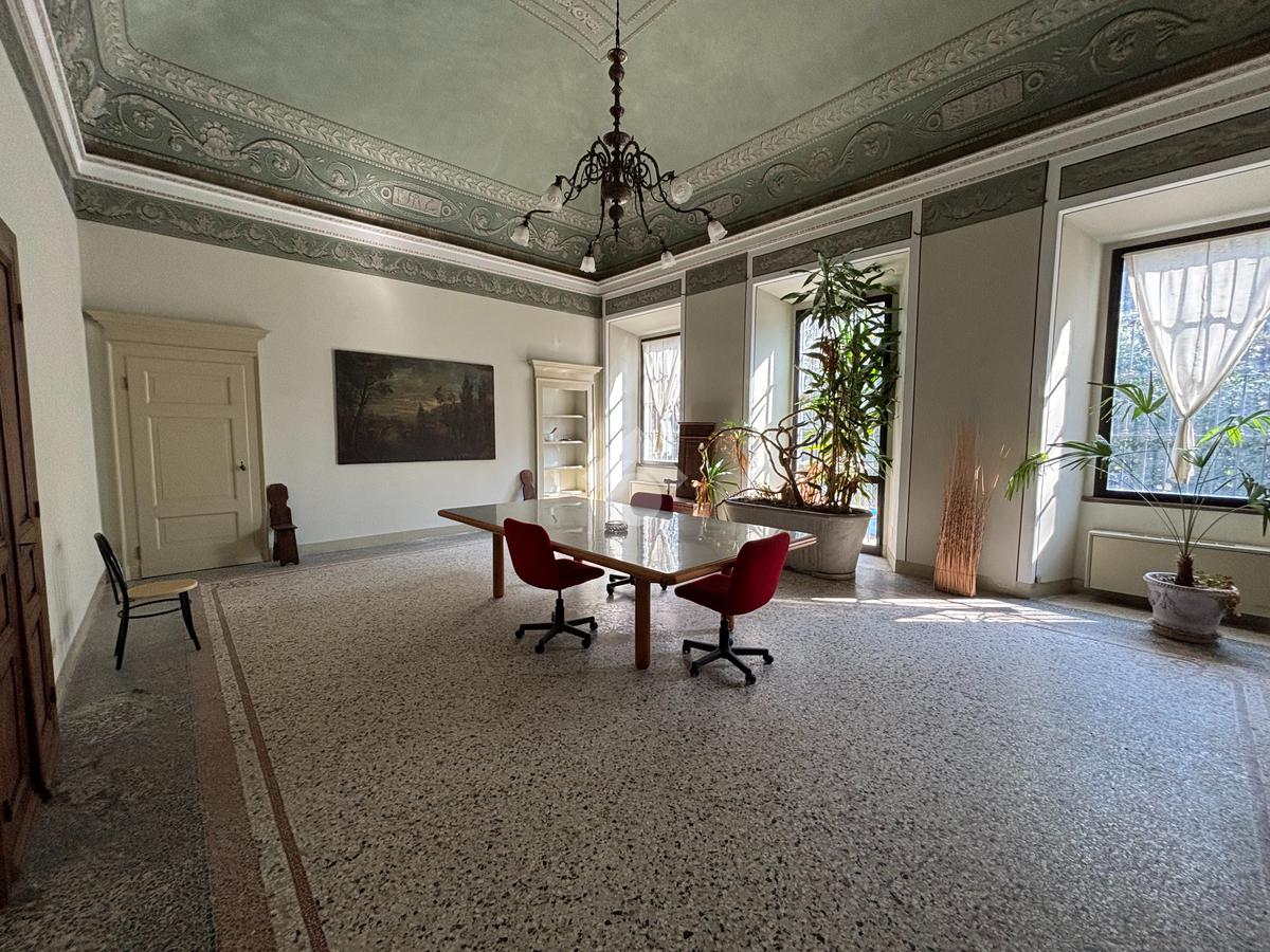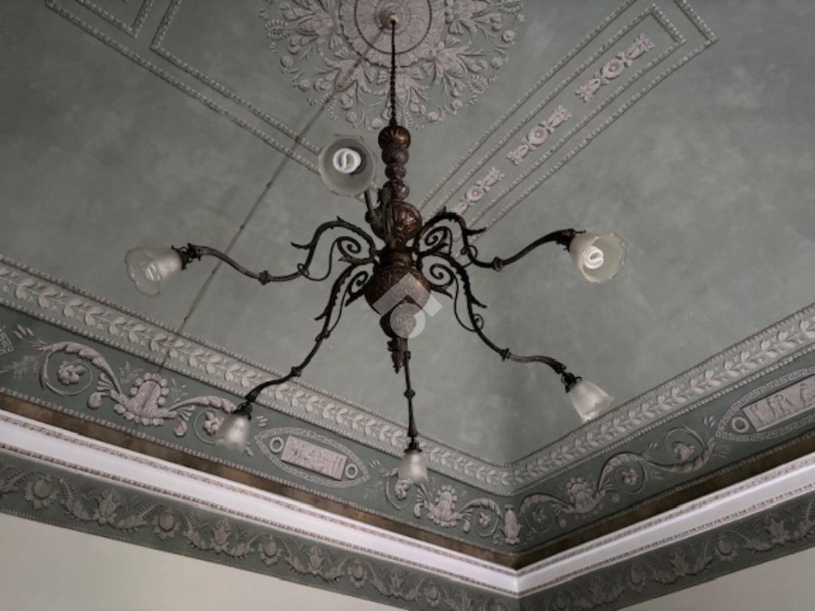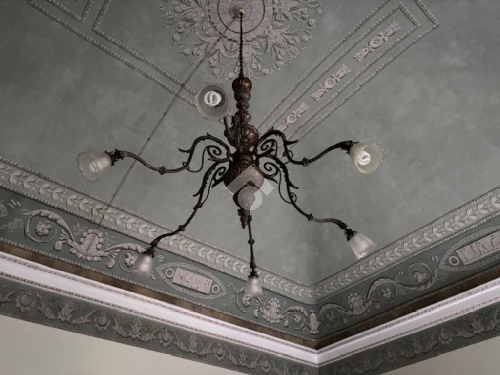 La porzione in vendita è posta al piano rialzato della villa, la bellezza degli ambienti risalta non appena si mette piede all'interno dei saloni con soffitti a volta decorati con altezze di cinque metri , oltre ai pavimenti in seminato veneziano con eleganti disegni a mosaico.