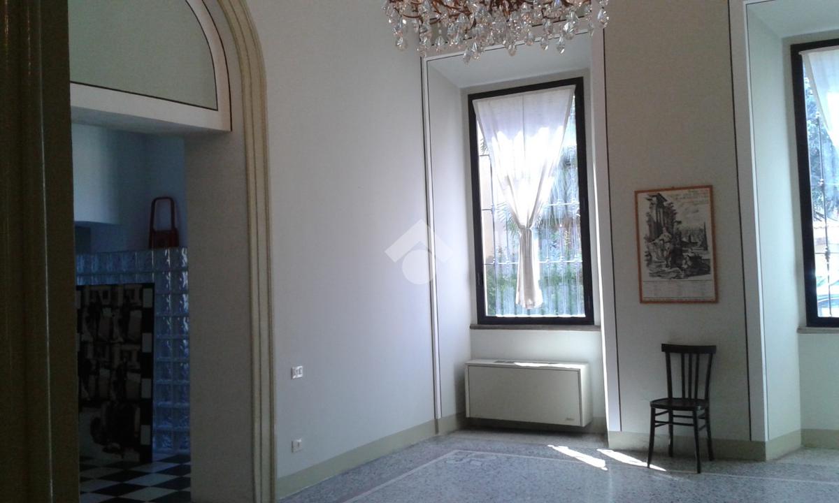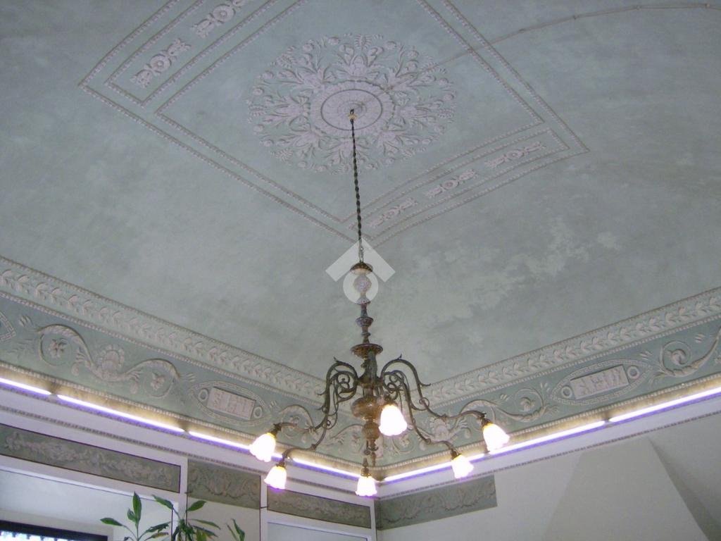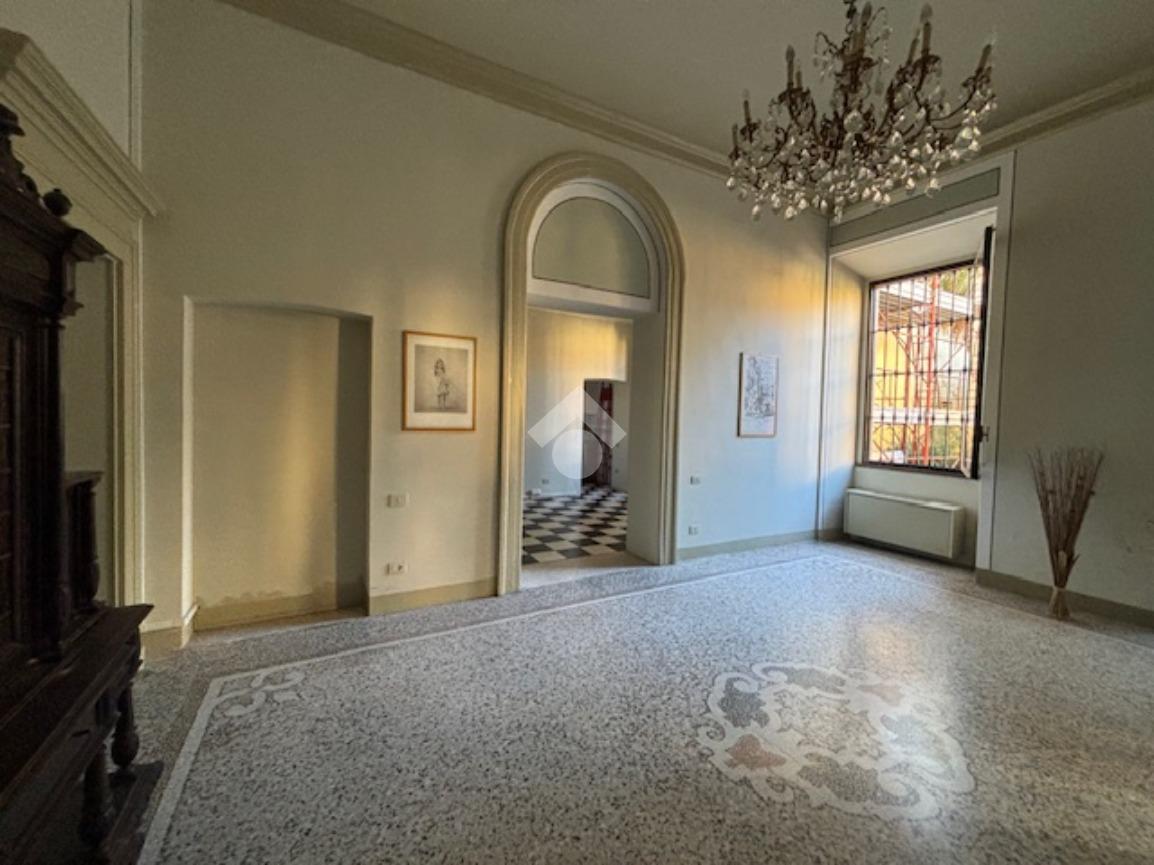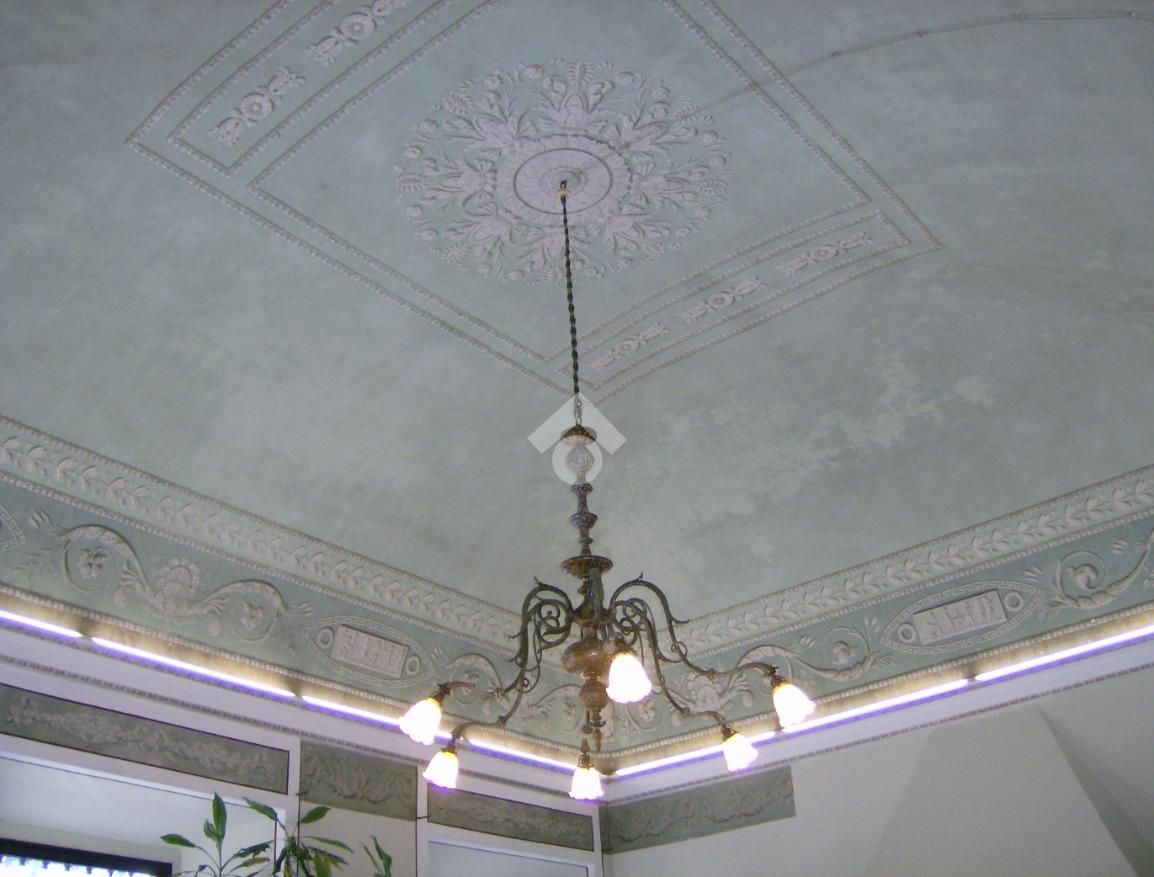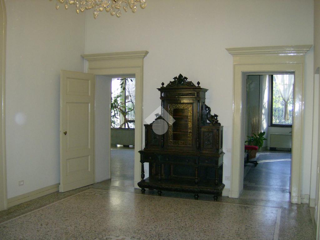 La porzione in vendita è posta al piano rialzato della villa, la bellezza degli ambienti risalta non appena si mette piede all'interno dei saloni con soffitti a volta decorati con altezze di cinque metri , oltre ai pavimenti in seminato veneziano con eleganti disegni a mosaico.