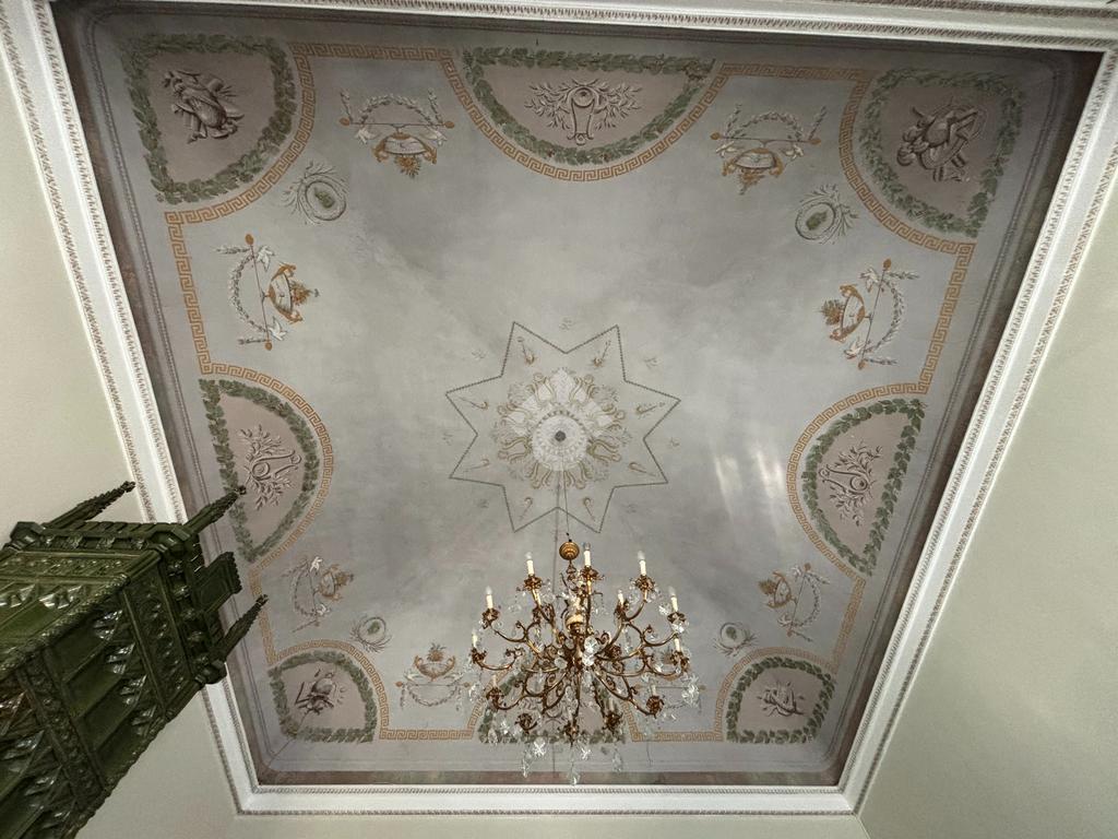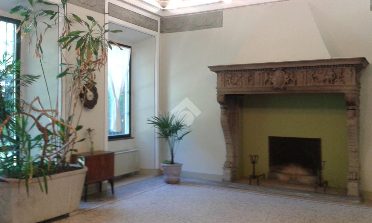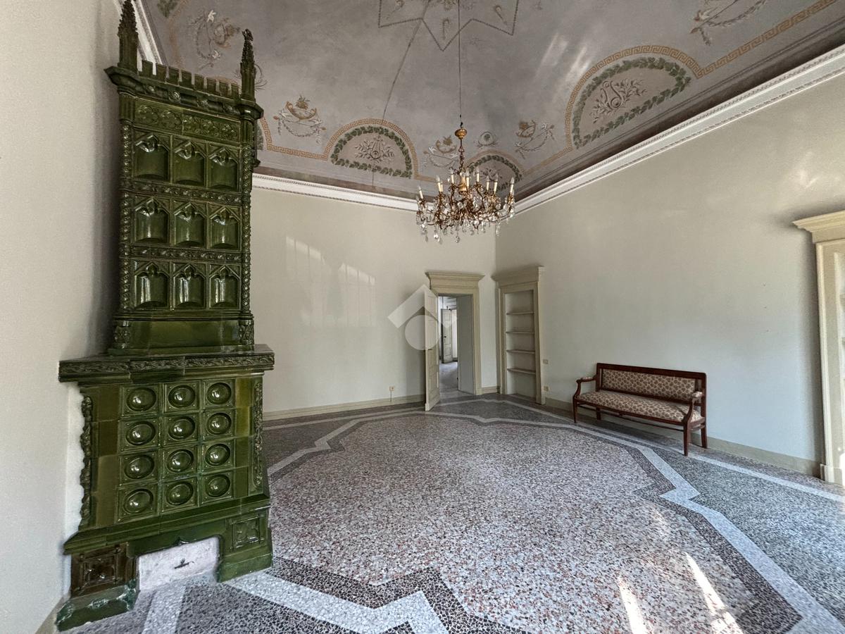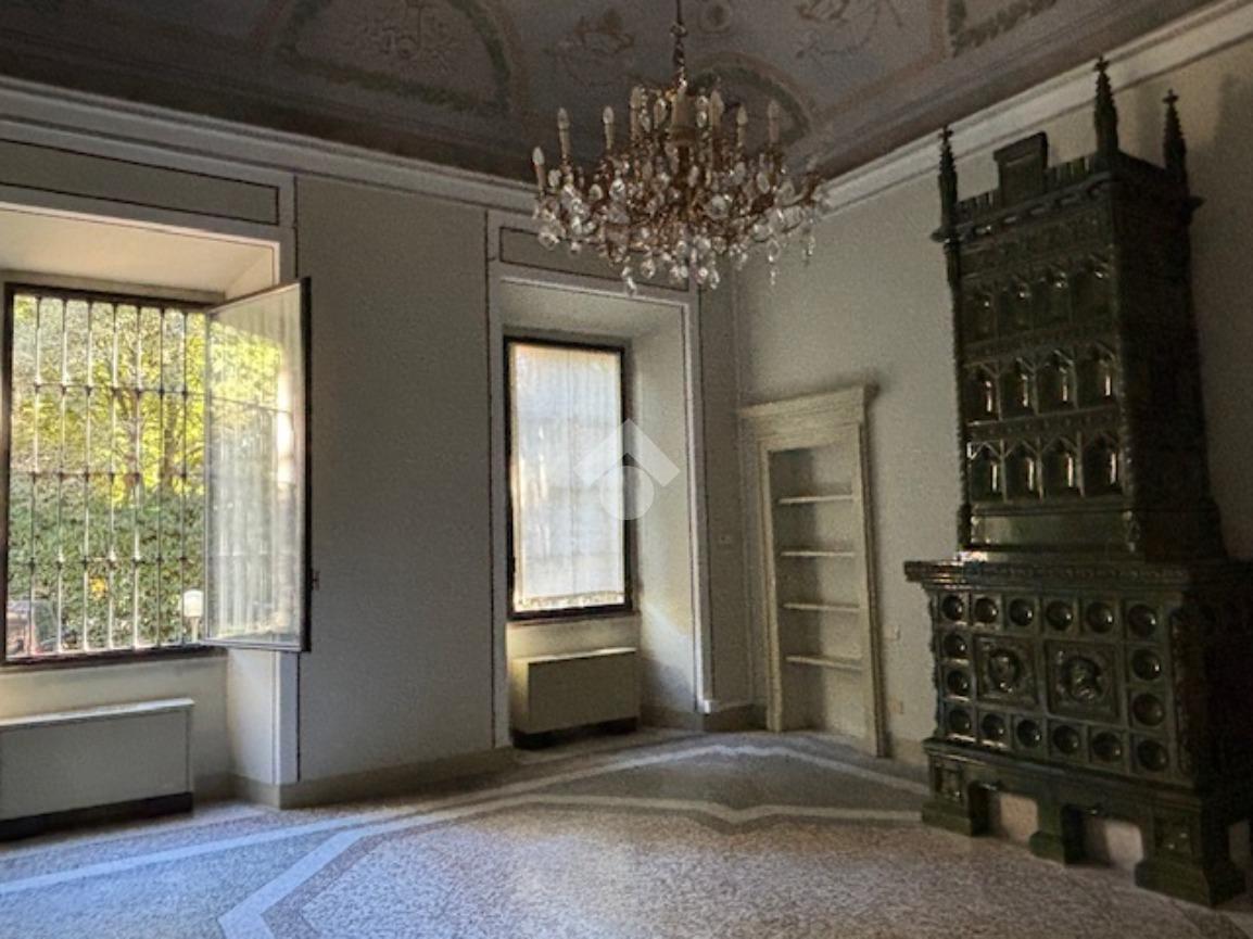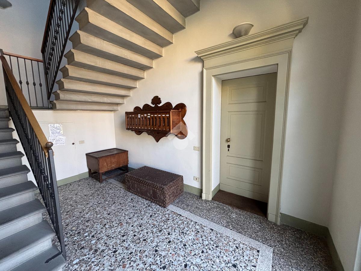 La porzione in vendita è posta al piano rialzato della villa, la bellezza degli ambienti risalta non appena si mette piede all'interno dei saloni con soffitti a volta decorati con altezze di cinque metri , oltre ai pavimenti in seminato veneziano con eleganti disegni a mosaico.