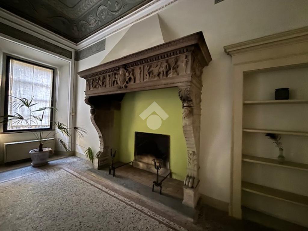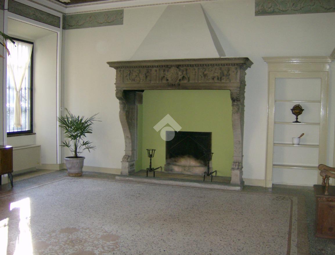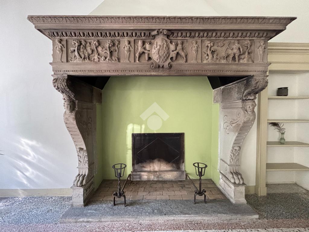 In particolare nel grande salone 'di caccia' è presente un prezioso camino in pietra serena raffigurante lo stemma della famiglia Castiglioni Olona con eleganti intagli di scene di caccia con il falcone.