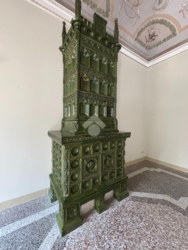 Nel salone a fianco cattura l'attenzione una imponente stufa in maiolica d'epoca settecentesca con elaborate decorazioni, proveniente pare dall'Alto Adige.
