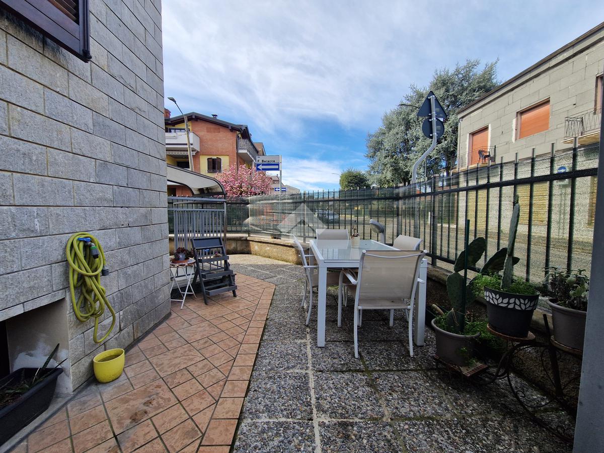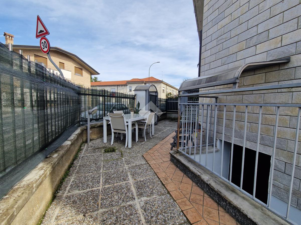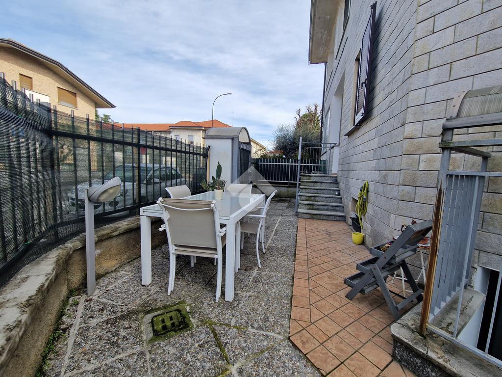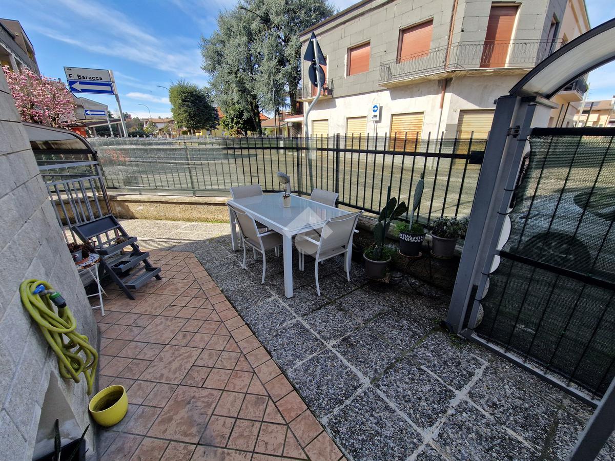 L'appartamento posto al piano rialzato ha un ingresso indipendente rispetto agli altri appartamenti dello stesso stabile, è quindi dotato di uno spazio esterno piastrellato di proprietà , nonchè di un terrazzino coperto adiacente alla porta blindata dell'ingresso.