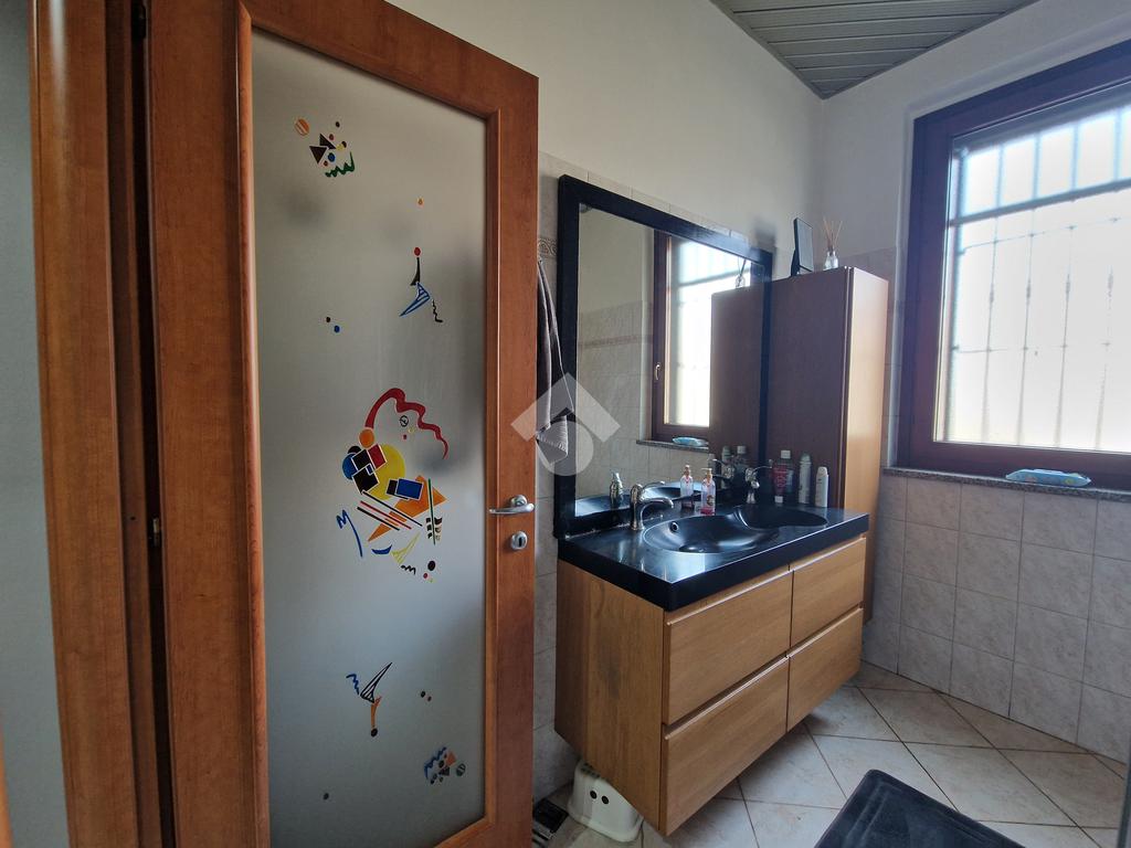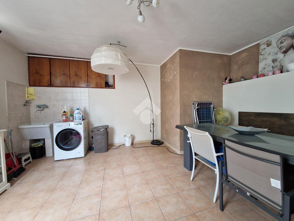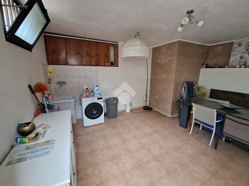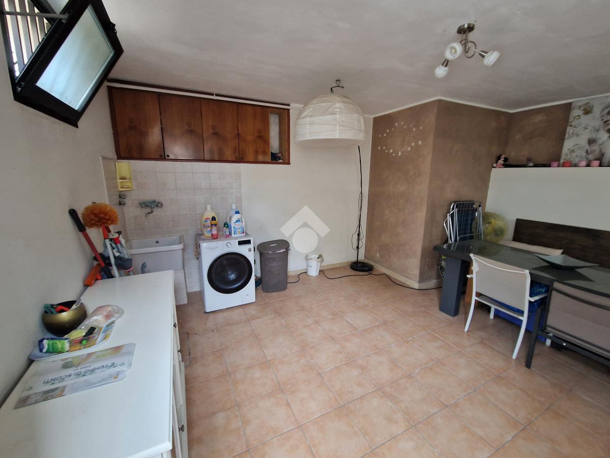 Dal giardino, alcuni gradini conducono al piano seminterrato dove troviamo un grande locale cantina (rifinito ed attualmente adibito a taverna e locale lavanderia).