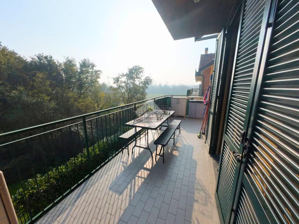 La zona giorno è composta dalla cucina abitabile e dal soggiorno servito da un comdoto terrazzo su vista parco.