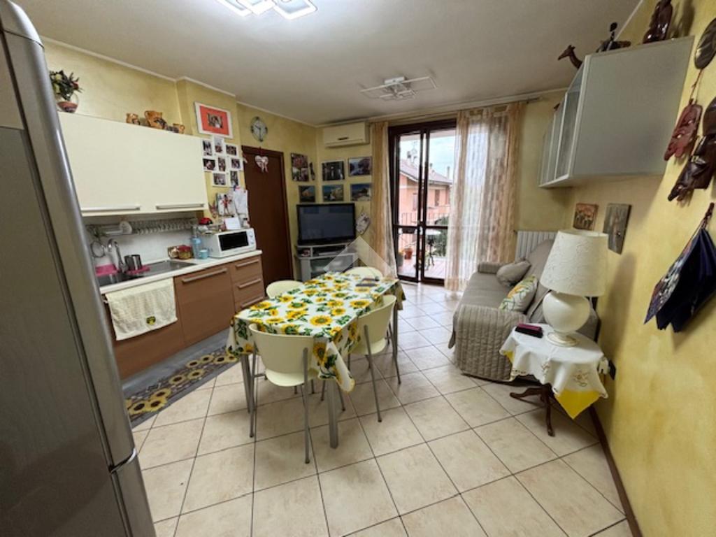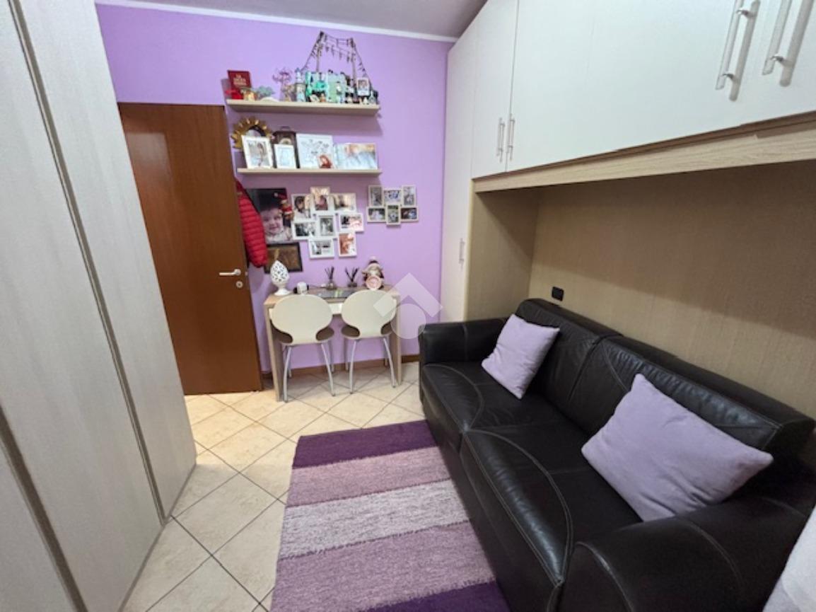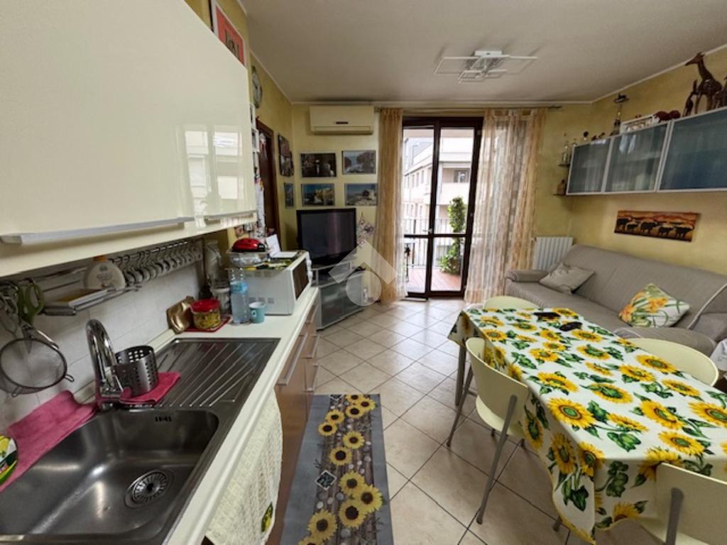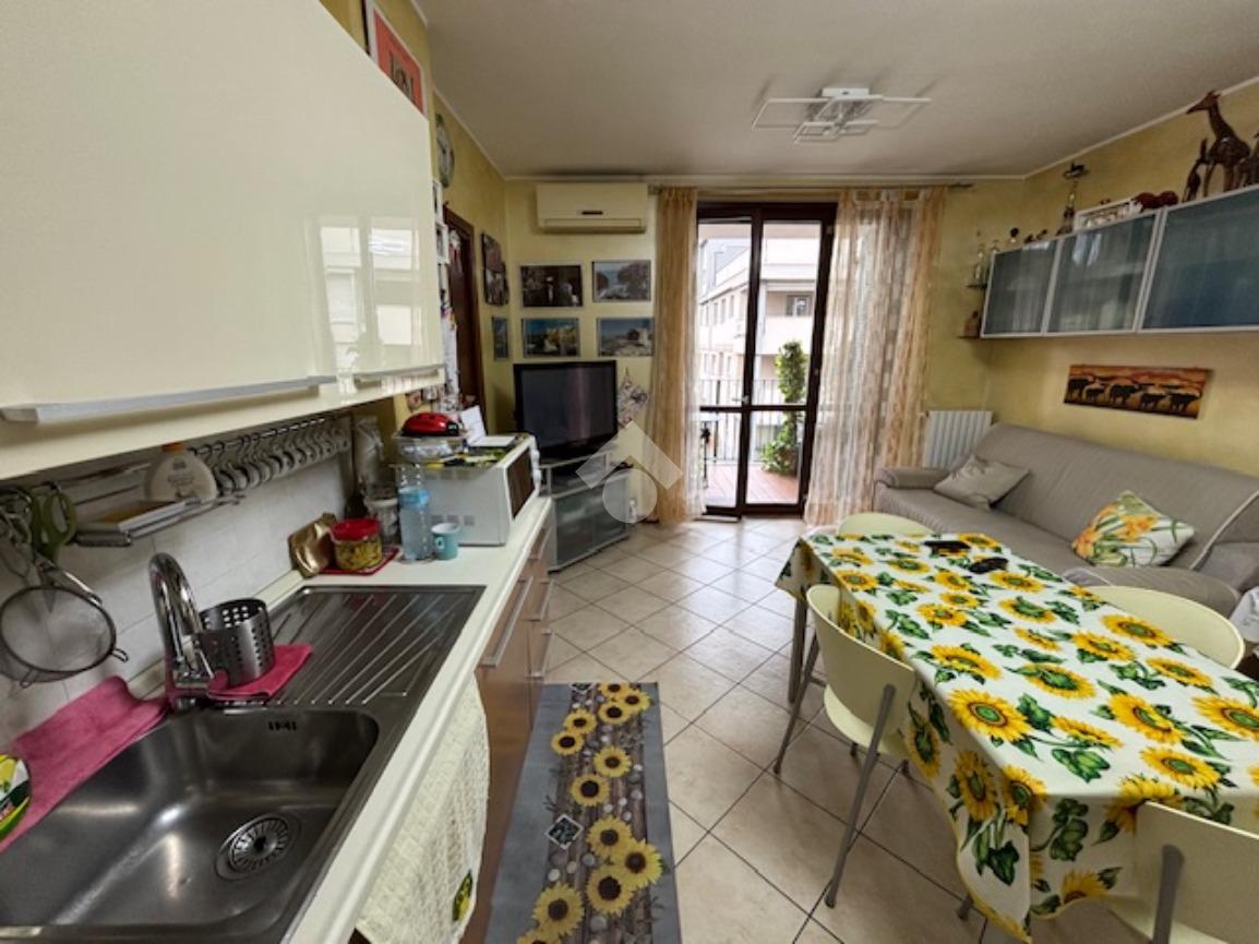 La palazzina di recente costruzione è dotata di ascensore. L'appartamento è posto ad un piano intermedio e si apre direttamente nella zona giorno composta da un'unico ambiente sala/cucina affacciati sul grazioso terrazzino coperto, ideale per ospitare un tavolo e poter pranzare fuori nella bella stagione. Il disimpegno separa la zona notte con il bagno, la camera matrimoniale e la cameretta con un bel balcone.