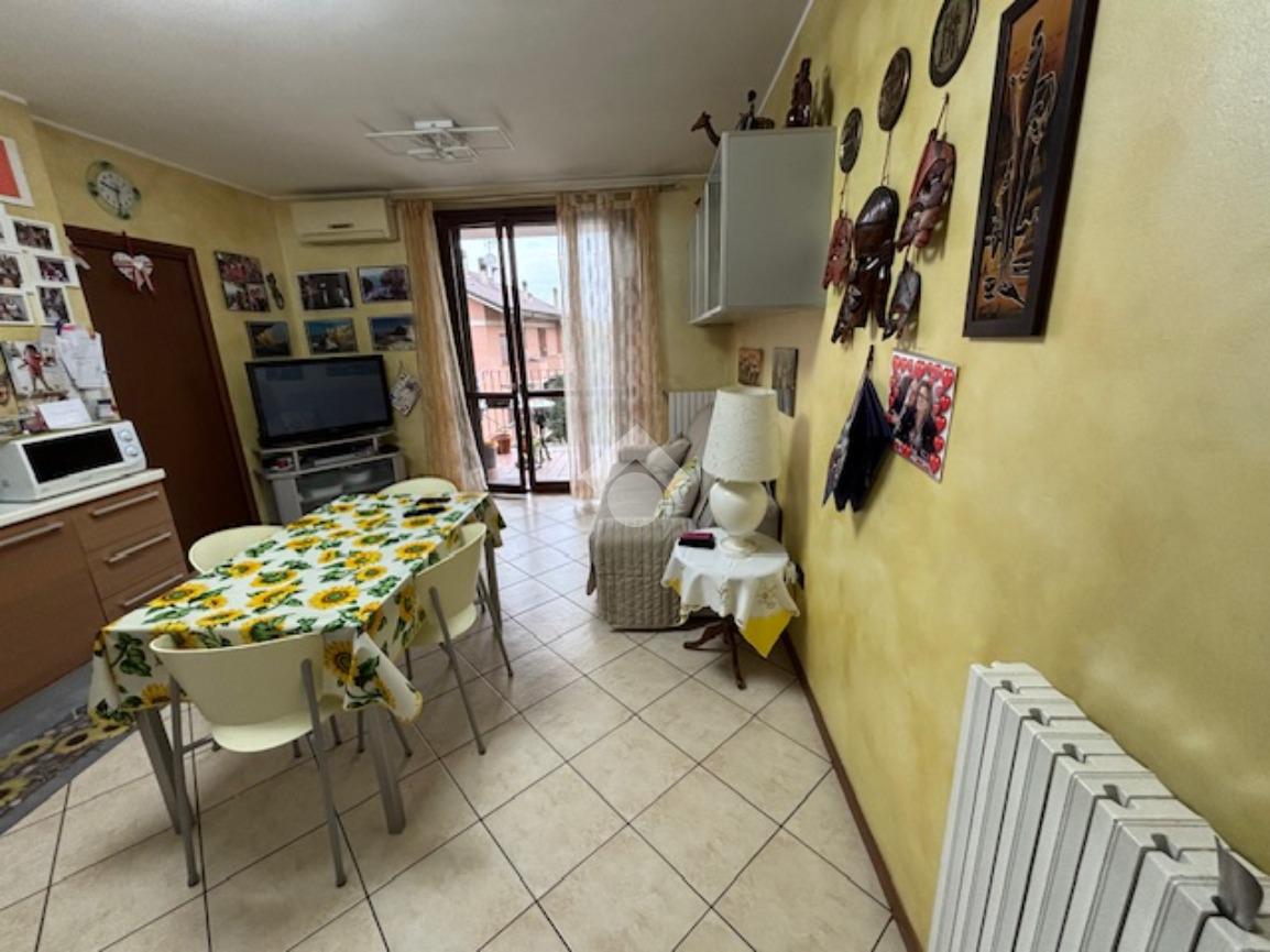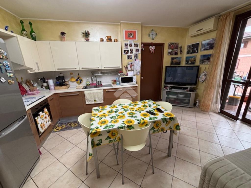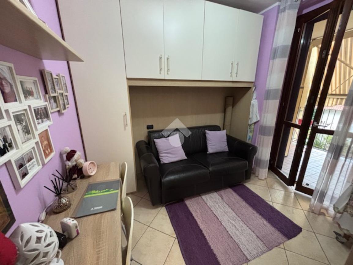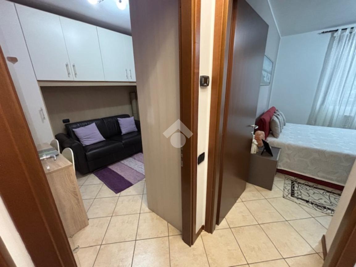 La palazzina di recente costruzione è dotata di ascensore. L'appartamento è posto ad un piano intermedio e si apre direttamente nella zona giorno composta da un'unico ambiente sala/cucina affacciati sul grazioso terrazzino coperto, ideale per ospitare un tavolo e poter pranzare fuori nella bella stagione. Il disimpegno separa la zona notte con il bagno, la camera matrimoniale e la cameretta con un bel balcone.