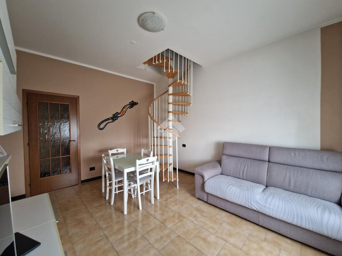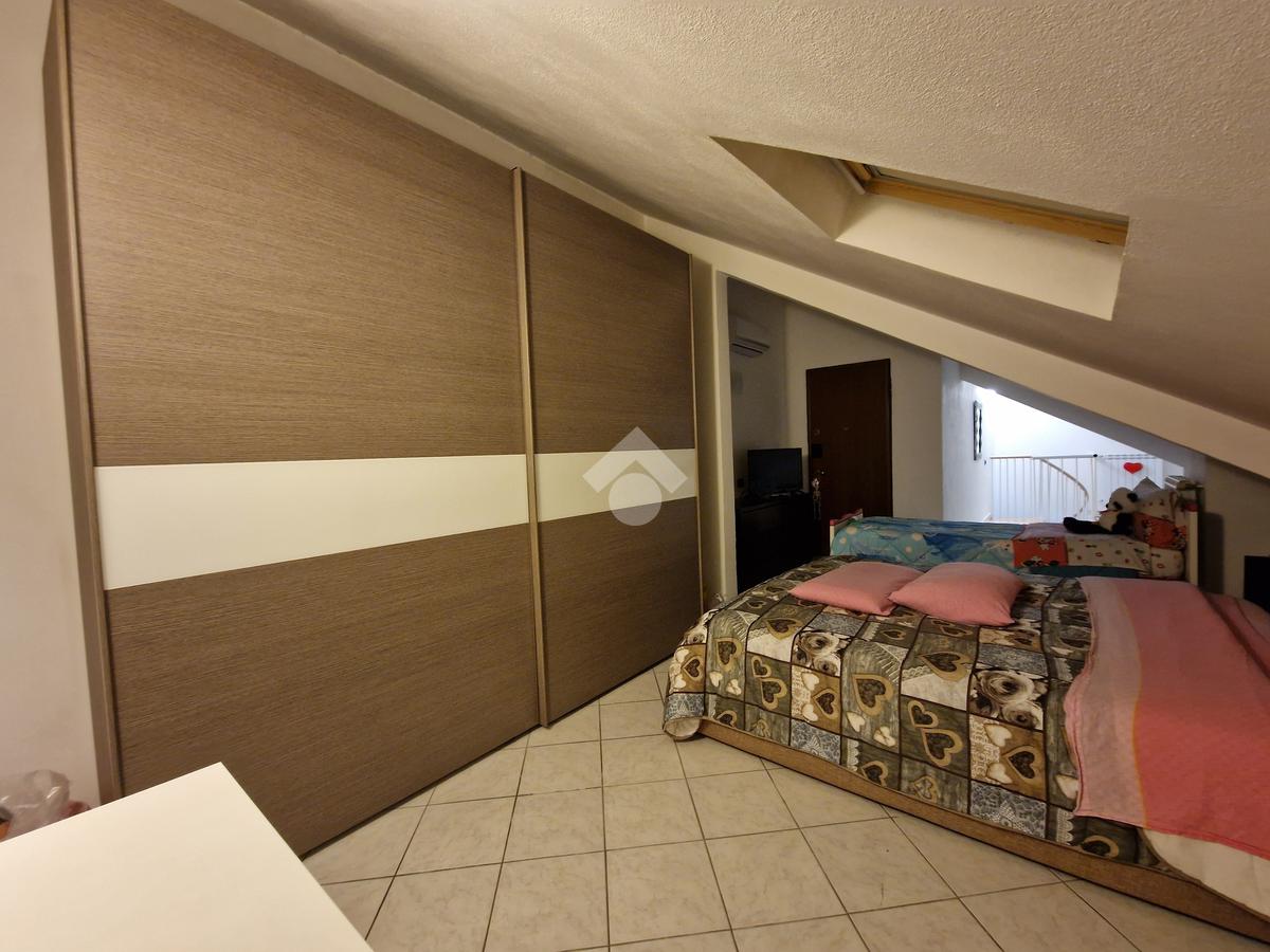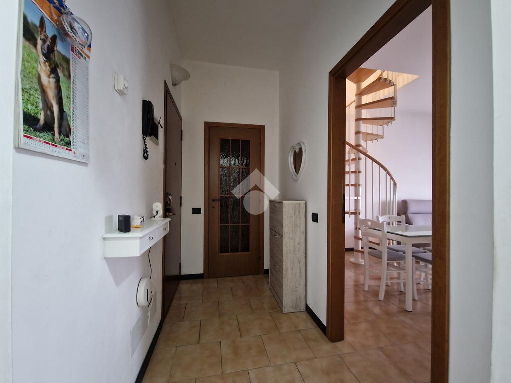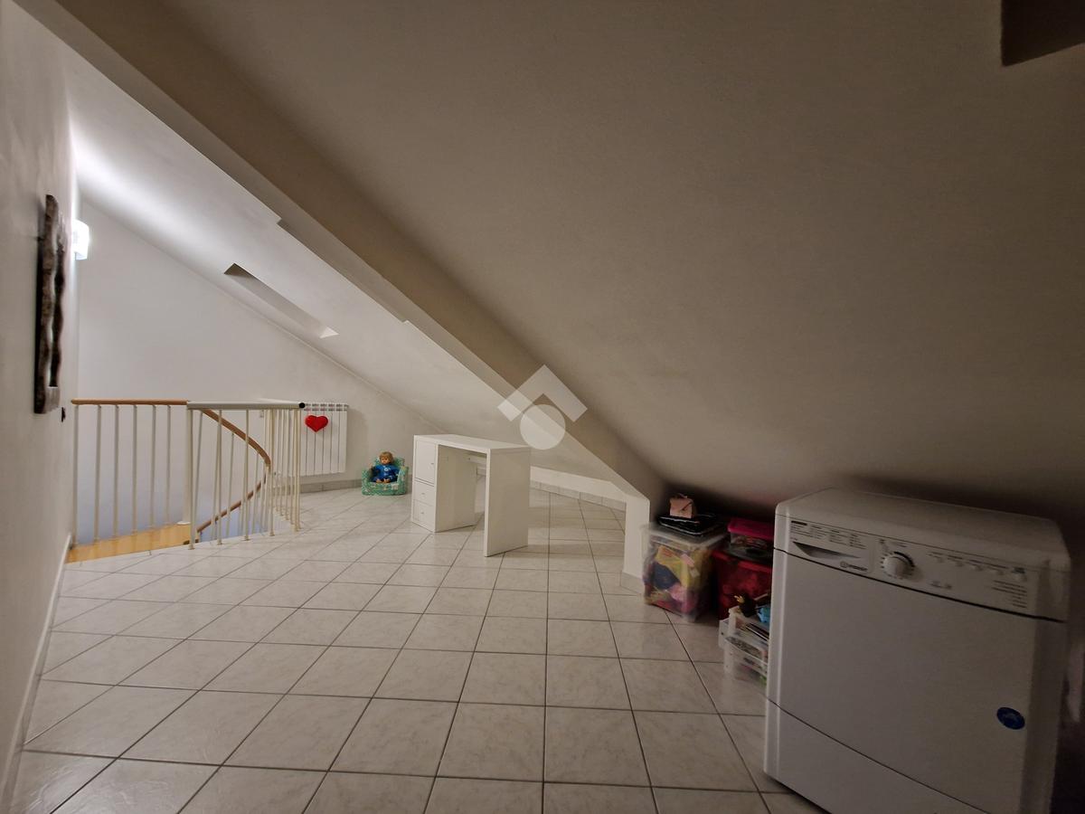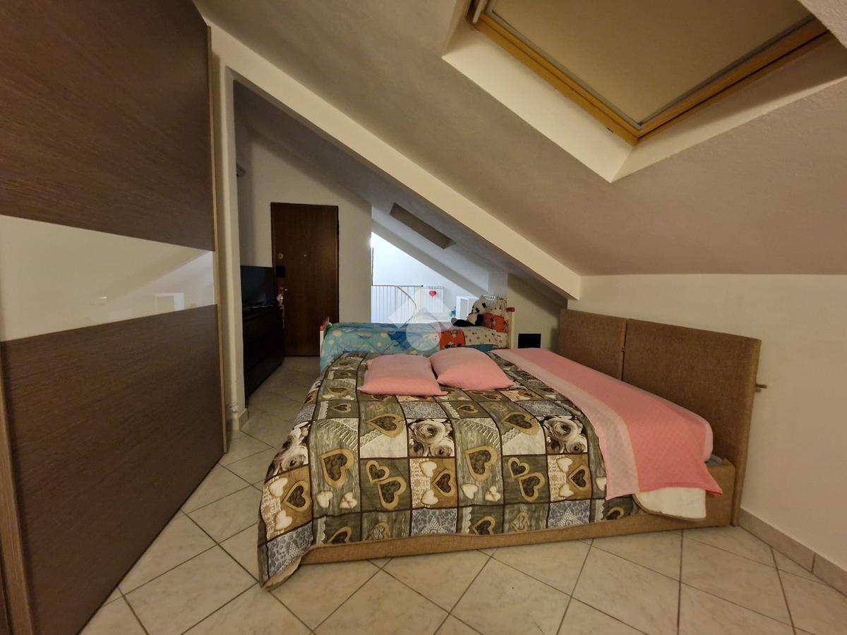 L'appartamento posto al sesto piano con ascensore è composto da ampio ingresso con un comodo ripostiglio, di fronte abbiamo il soggiorno con una scala a chiocciola che conduce al piano sottotetto servito da tre lucernari , dove troviamo un grande open space attualmente adibito a camera da letto . A fianco al soggiorno prosegue l'abitazione con il bagno finestrato con affaccio sul balcone e alla cucina abitabile anch'essa affacciata al medesimo balcone esposto a est.