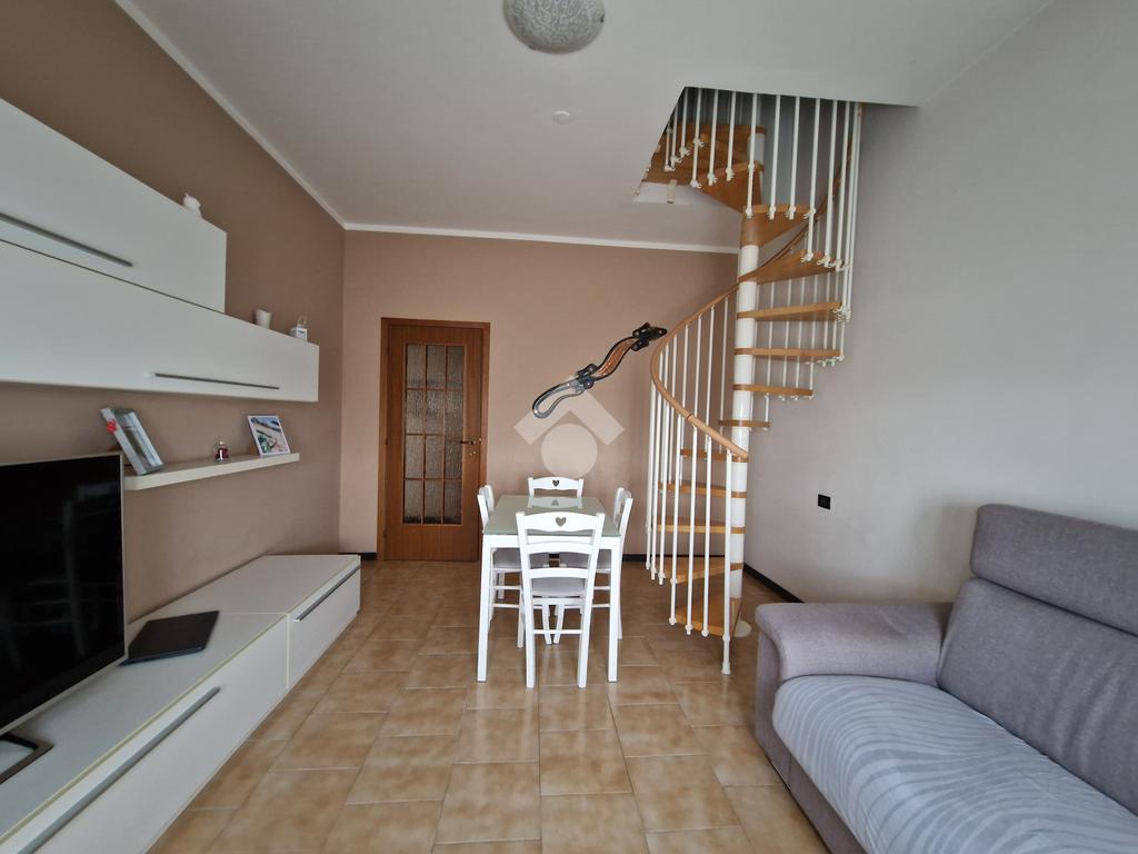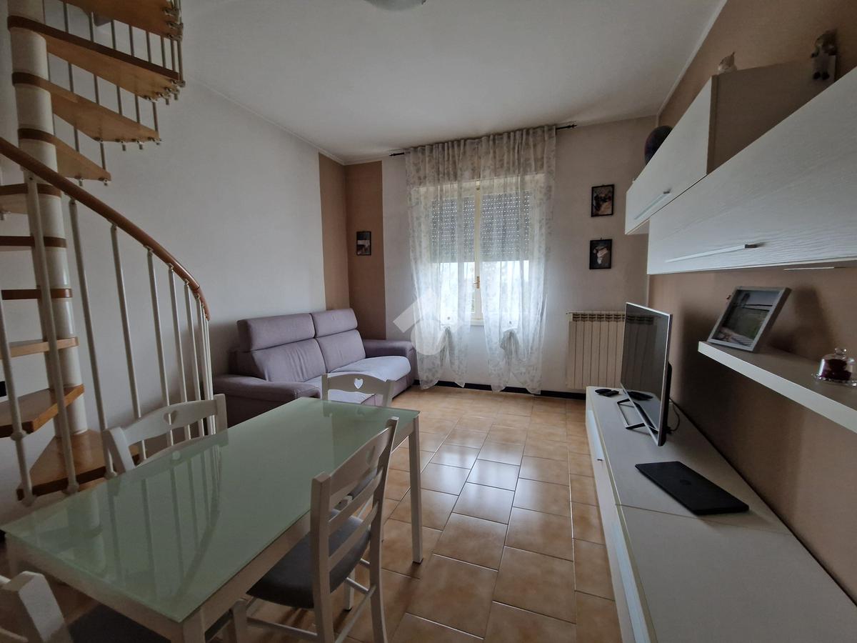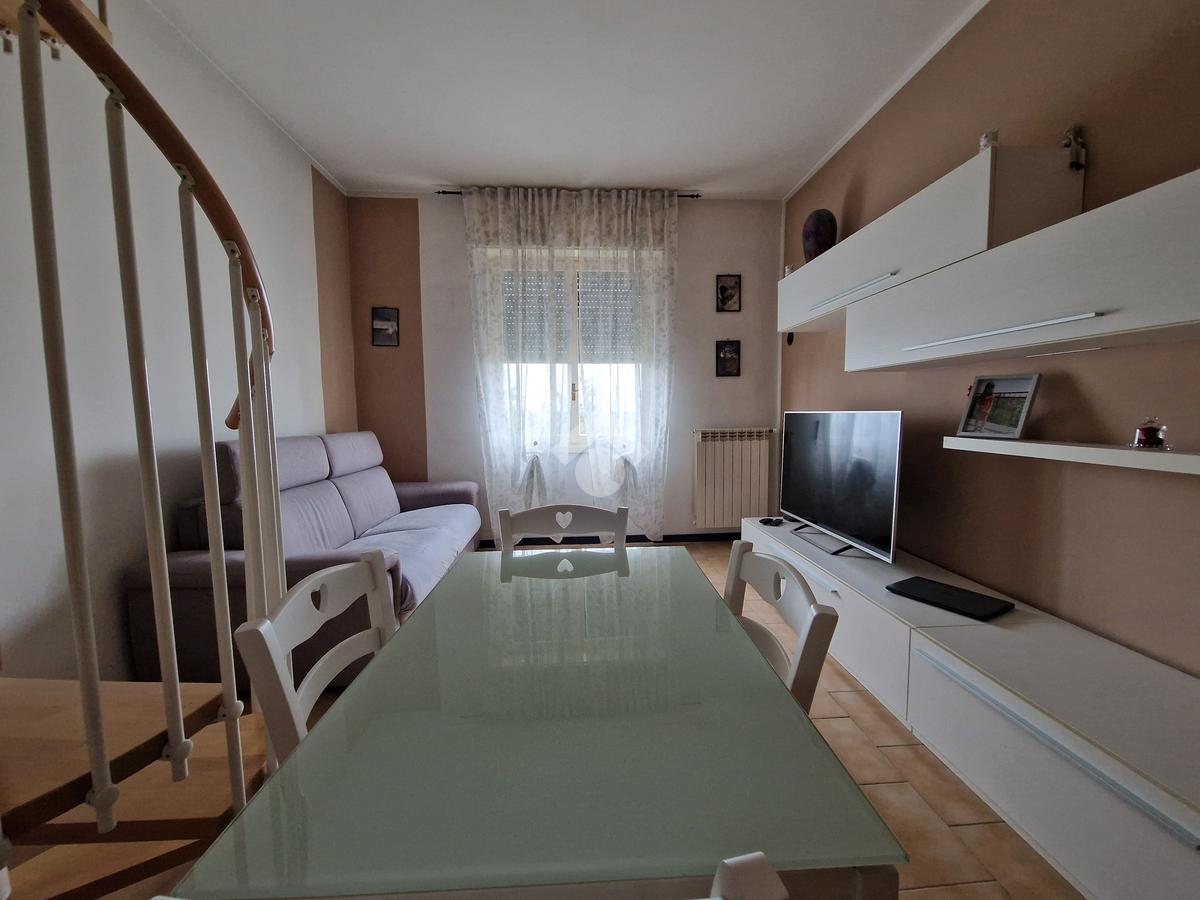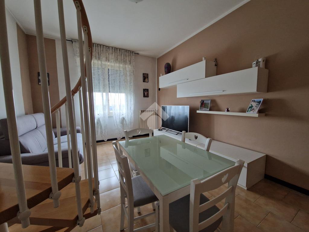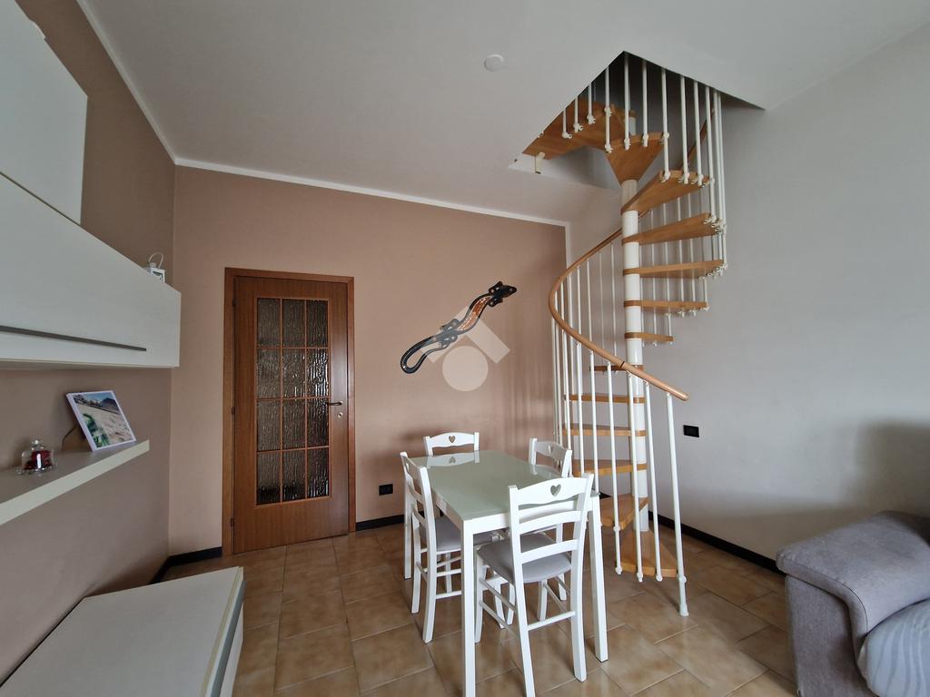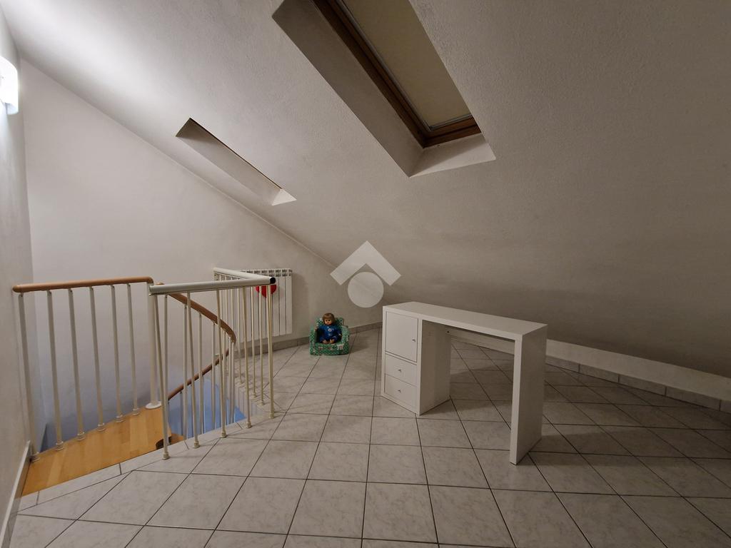 L'appartamento posto al sesto piano con ascensore è composto da ampio ingresso con un comodo ripostiglio, di fronte abbiamo il soggiorno con una scala a chiocciola che conduce al piano sottotetto servito da tre lucernari , dove troviamo un grande open space attualmente adibito a camera da letto . A fianco al soggiorno prosegue l'abitazione con il bagno finestrato con affaccio sul balcone e alla cucina abitabile anch'essa affacciata al medesimo balcone esposto a est.